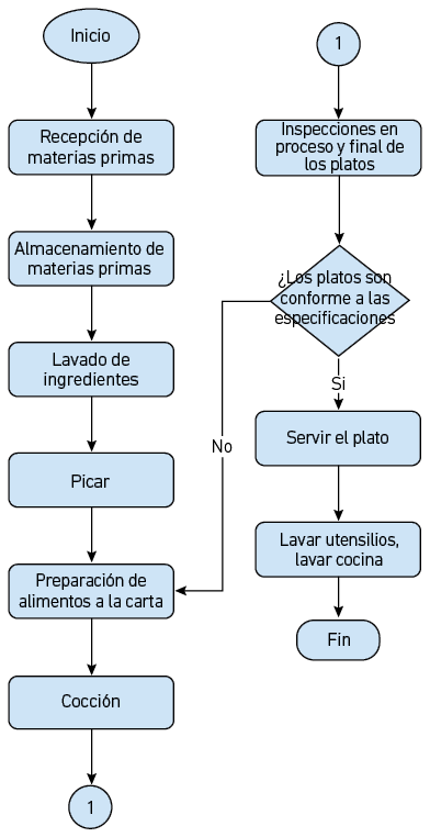 Diagrama de flujo de la preparación de alimentos en un restaurante
