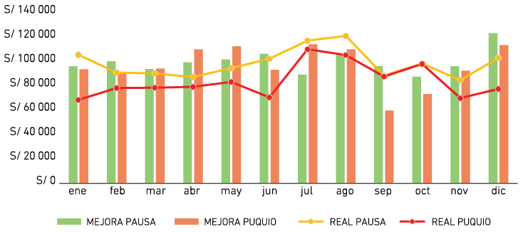 La primera estrategia tiene como fin mejorar la experiencia del cliente a cambio de un costo mensual de S/ 70 por membresía. Las estrategias segunda y tercera tienen como fin impulsar la demanda mediante descuentos llamativos. El resultado de las herramientas revela la ganancia proyectada a lo largo del periodo de un año, detallado por mes en la Figura 13.