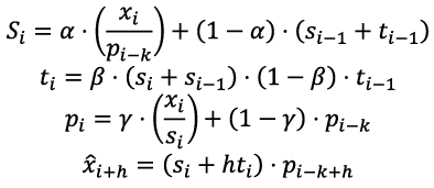 Para la proyección de la demanda, se realizó una evaluación comparativa de los métodos de series de tiempo basada en los resultados de los indicadores mean absolute deviation (MAD) y mean absolute percentage error (MAPE) para ambas rutas. Asimismo, se utilizó Solver para minimizar los valores del MAD y MAPE, con restricciones en los parámetros alfa, beta y gamma, cuyo rango se estableció entre 0 y 1. La metodología seleccionada fue la de suavización exponencial triple con estacionalidad multiplicativa, ya que, para ambas rutas, presentó los menores errores porcentuales y absolutos en la proyección de la demanda. Los resultados se presentan en la Tabla 2.