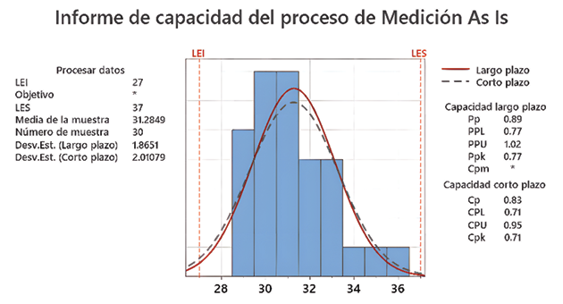 En la etapa de medición del problema, se organizan y procesan los resultados del cuestionario. Es necesario realizar una visita al restaurante para cronometrar el proceso de atención al cliente y los tiempos de preparación del pedido más solicitado. Con esta información, se recopilan los datos necesarios para desarrollar la herramienta VSM de la situación actual, la cual permite visualizar el flujo de preparación del pedido. También, se elabora una carta de control para calcular los valores de Cp y Cpk, con el fin de verificar si superan el valor de 1,33 (Borucka et al., 2023) y evaluar si la capacidad del proceso es aceptable.