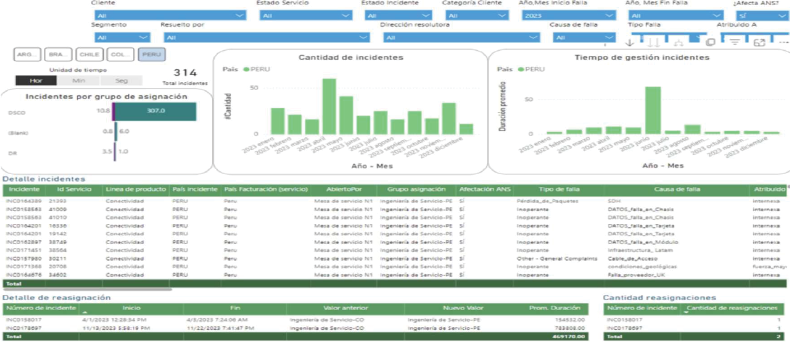 Los datos utilizados en esta investigación se recopilaron a través de un sistema centralizado de registro de fallas que registra, rastrea y resuelve problemas de servicio y que contempla detalles sobre el estado, la asignación y los plazos. Este sistema facilita la comunicación entre departamentos y asegura una resolución eficiente. Luego, los datos recopilados se analizaron utilizando técnicas estadísticas avanzadas y herramientas de visualización, como se muestra en la Figura 3, para cuantificar la frecuencia de incidentes y la duración promedio, proporcionando una comprensión clara y objetiva de la situación operativa de la empresa.
