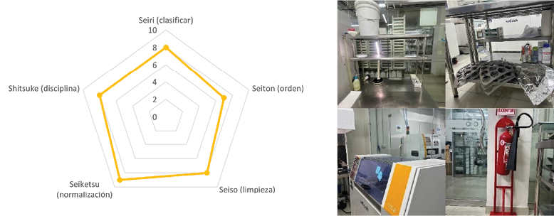 También se realizó una auditoría sin que el personal haya sido avisado con anticipación, con el fin de tomar en cuenta los datos reales de esta área. Gracias a la auditoría, la empresa se pudo dar cuenta de las cosas que faltaban (por ejemplo, colocar señalizaciones, nombres a los insumos, nombres a las maquinarias, entre otros). En la Figura 3 se presentan los resultados de las preguntas que se hicieron para cada S, con el objetivo de mejorar el puntaje y así tener un área de trabajo organizada y, sobre todo, ordenada.