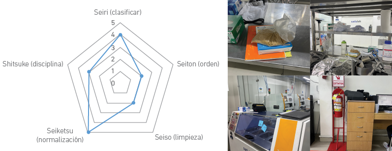 En la segunda evaluación, se obtuvieron mejores puntuaciones para cada una de las 5S. Para seiri se obtuvo una diferencia de cuatro puntos; para seiton, una diferencia de 7 puntos; para seiso, una de 6 puntos; para seiketsu, una de 4 puntos; y para shitsuke, una de 5 puntos.