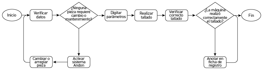 Asimismo, en la Figura 7 se presenta un flujograma del proceso de tallado con verificaciones de calidad y el sistema Andon implementados.