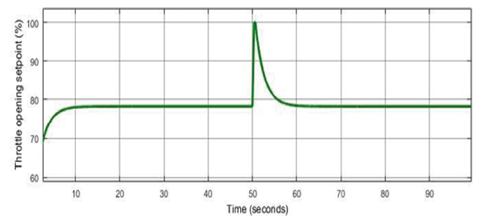 Throttle opening setpoint control signal, in opening percentage, for the engine at 3000 RPM