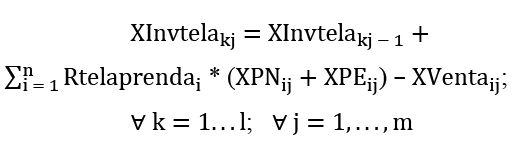 Xinvtelakj: tela en inventario final del diseño k = 1,…,l durante el mes j = 1,…,m.
