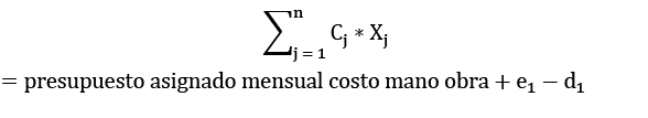 XPNij: número de unidades a producir en horario normal de las prendas modelo i = 1,…,n durante el mes j = 1,…,m.