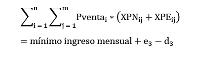 a) Balance de producción e inventario de productos terminados: el inventario final de la prenda modelo i, durante el mes j, es igual al inventario inicial de la prenda i durante el mes j, más la producción de la prenda i durante el mes j, menos la venta de la prenda modelo i durante el mes j.