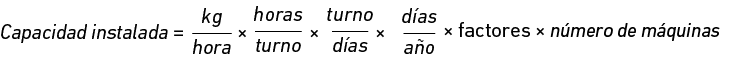 Luego de calcular el número de máquinas, se procedió a calcular la capacidad instalada considerando la siguiente fórmula: