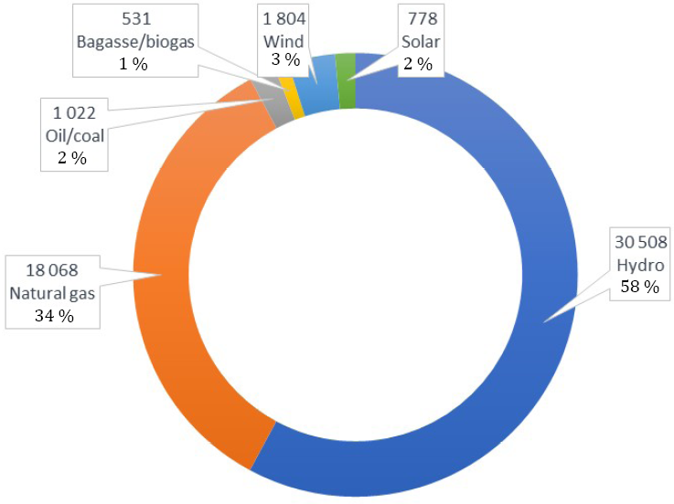 Figure 1. Energy generation by type in 2020, GWh and % of total