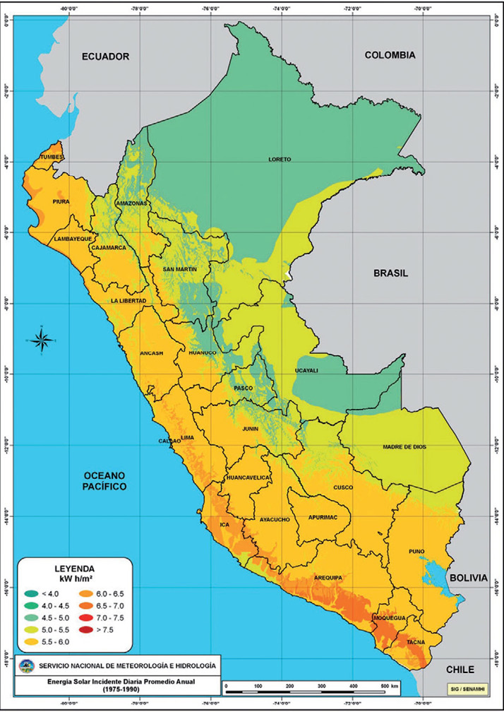 Figure 2. Daily solar irradiance in Peru (yearly average 1975-1990)