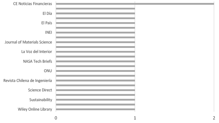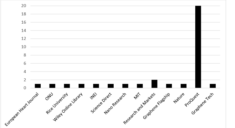 Asimismo, después de una revisión de la aplicación del grafeno en diversas industrias, se adoptó un enfoque desde la industria de la construcción. Se consultaron fuentes de Europa, Asia y América entre los años 2006 y 2021. Se trabajó con una base de 176 artículos consultados, de los cuales se seleccionaron 33 luego de aplicar un filtro según la orientación de la investigación por categorías de análisis propuestas e industrias de aplicación del grafeno. De las 33 fuentes citadas, 18 de ellas fueron de la base de datos ProQuest.