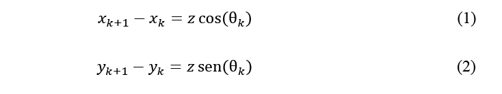 En el análisis geométrico basado en los triángulos que se forman entre el cuerpo del tráiler en cada instante de tiempo, se tiene el triángulo formado por las ruedas de tracción en los puntos A y B, y donde z corresponde a la distancia recorrida en un instante de tiempo Δt, con lo que se generan las siguientes ecuaciones: