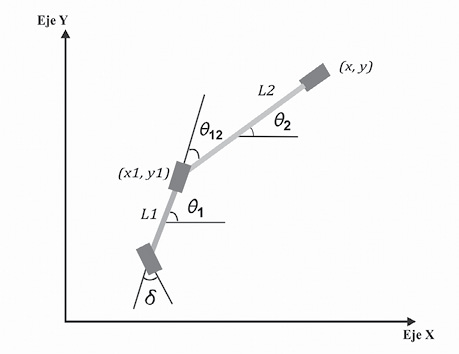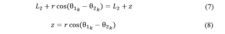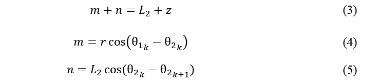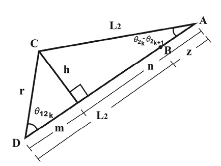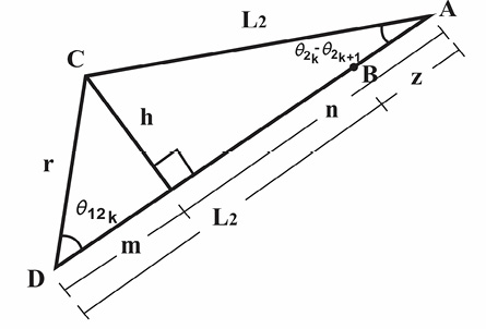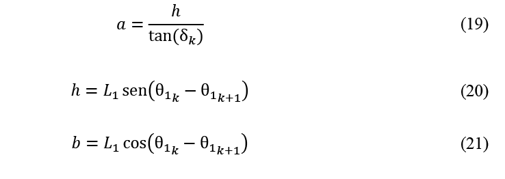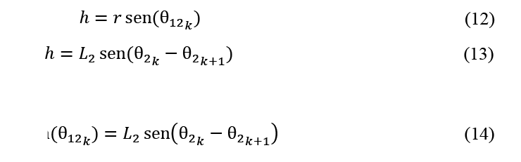 Utilizando la ecuación (9) para un instante de tiempo k + 1, se llega a la fórmula para el cálculo del ángulo de unión de los cuerpos θ12.