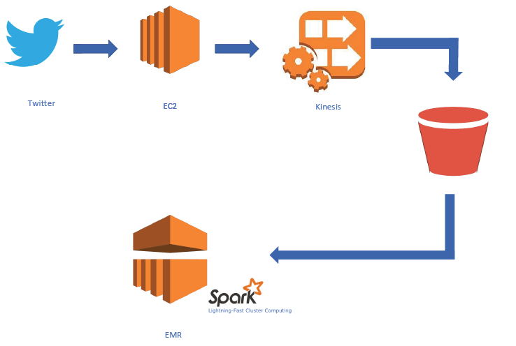 Una vez concluido el primer análisis exploratorio con la muestra de datos, se procede a desplegar la siguiente arquitectura de big data en Amazon Web Services (AWS):