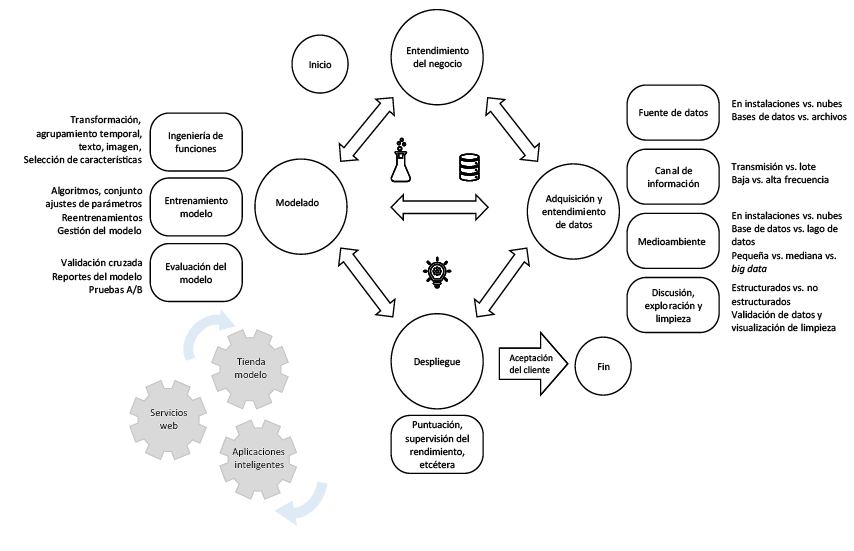 Nota. De What is the Team Data Science Process, por Microsoft, 2021 (https://docs.microsoft.com/en-us/azure/architecture/data-science-process/overview). Derechos de autor 2021 Microsoft.