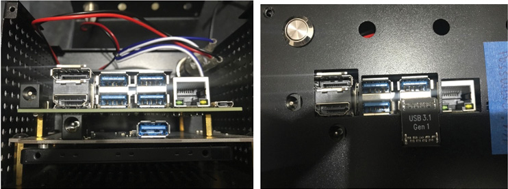 Procesador Jetson Nano, con cinco puertos USB, un conector RJ45 y un conector HMI