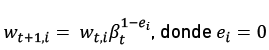 3.4 Se actualizan los pesos: si el ejemplo xi se clasifica correctamente y 1 en caso contrario; y
