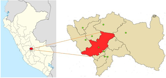 El Perú tiene una superficie de 1 285 215 km2 y comprende tres regiones geográficas: la costa con el 11 % del territorio, la sierra con el 29 % y la selva con el 60 %. Políticamente está divido en 24 regiones. La provincia de Jauja se encuentra en el departamento de Junín, con coordenadas 11°46’30’’ S, 75°30’0’’ W (véase la figura 2).
