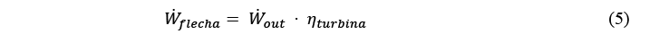 De esta forma, el trabajo de flecha de la turbina se expresa en la ecuación 5, considerando la eficiencia de la turbina