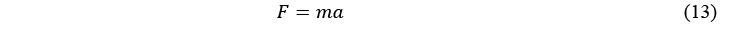 Además, F se representa como el producto de m y a, cuya expresión se aprecia en la ecuación 13.