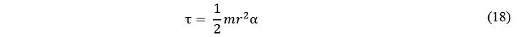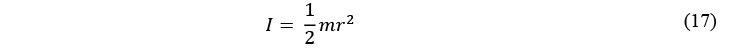 La sumatoria de las m multiplicada por el representa el momento de inercia (I) y su valor depende del caso de estudio. Para el caso de un disco sólido, según Serway y Jewett (2008), (I) se representa en la ecuación 17.