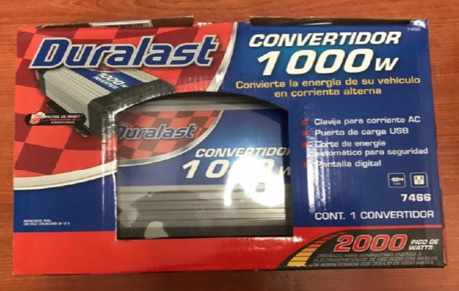 Por último, para convertir los 12 V de corriente directa a 110 V de corriente alterna, es necesario un inversor. El inversor seleccionado fue de la marca Duralast de 1000 W de potencia eléctrica, como se aprecia en la figura 13.