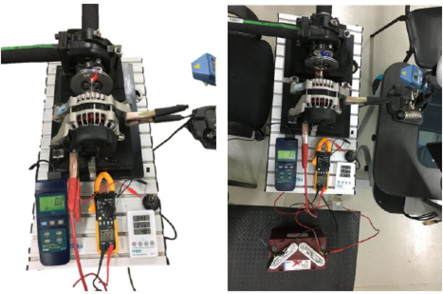 Turbocompresor acoplado al alternador conectado a la batería para pruebas experimentales