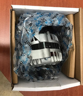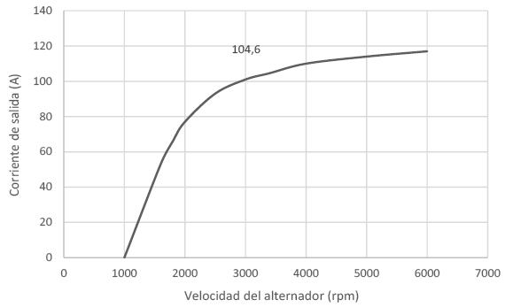 El alternador transformará la energía mecánica producida por la flecha del turbocompresor a energía eléctrica. En la figura 10, se puede ver el alternador seleccionado para la generación eléctrica, que es el de un automóvil marca Chevy, modelo 2004. Las especificaciones del fabricante indican la generación de 12 V a 105 A obteniendo 1250 W de potencia eléctrica. Se consideró de esta manera debido a que la eficiencia de los alternadores es de un 80 %, lo que genera un total de 1000 W de potencia eléctrica.