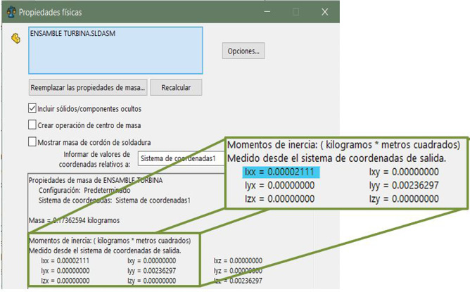 Momento de inercia de la turbina del turbocompresor K16 en el software SolidWorks