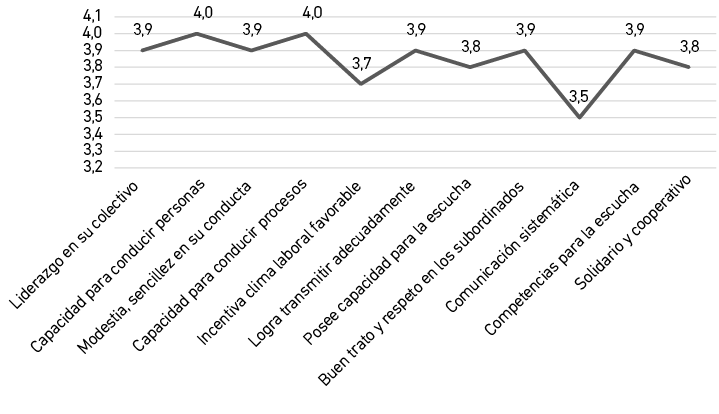 En la valoración de los trabajadores sobre la labor directiva, se puede apreciar que existe proporción entre las tres competencias, y ello es importante para el logro de los resultados de la organización. No obstante, es necesaria la revisión con mirada crítica de cada uno de los indicadores, que, de no atenderse con intencionalidad, pueden llevar a ocasionar el efecto no deseado para la empresa.