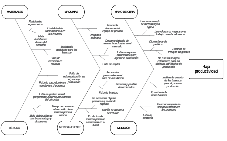 European Commission (2016), en el evento de alto nivel denominado FOOD 2030: Research and Innovation for Tomorrow’s Nutrition and Food Systems, destacó la necesidad de adoptar distintos enfoques en nuestros sistemas alimentarios; es decir, más sostenibles, resilientes, responsables, diversos, competitivos e inclusivos. Para ello, según Charalampopoulos (2018), se deberían adoptar distintas acciones, incluido el aumento en la producción total, mejorar los procesos y canales de distribución, reducir el desperdicio de alimentos, entre otros. El uso de herramientas lean, como 5S y JIT, junto con metodologias como el Value Street Mapping (VSM), ayudan a indentificar necesidades para lograr dichos enfoques (De Steur et al., 2016). De igual forma, Reis et al. (2019) indican que el uso de herramientas como el diagrama de Ishikawa brinda una guía de cómo proceder con la implementación de soluciones. Rahman et al. (2010) enfatizan la idea de que el uso eficiente de estas herramientas, junto con un fuerte compromiso y enfoque de parte de los trabajadores, mide el factor de éxito de una compañía.