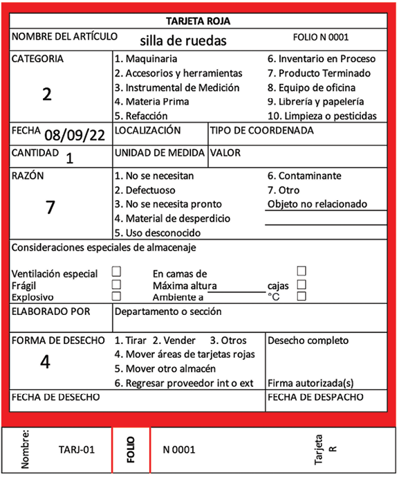 Uno de los pilares dentro del sistema lean manufacturing es la metodología 5S, la cual está compuesta por cinco fases: clasificar (Seiri, fase 1), organizar (Seiton, fase 2), limpiar (Seiso, fase 3), estandarizar (Seiketsu, fase 4) y seguir mejorando (Shitsuke, fase 5) (Vargas Crisóstomo & Camero Jiménez, 2021).