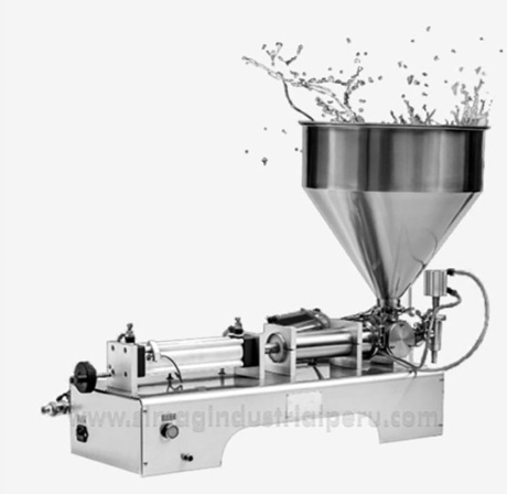 Por ende, se propuso el uso de una dosificadora semiautomática con tolva (Figura 3.10), ya que, entre las necesidades requeridas para el proceso, se buscó un equipo construido con acero inoxidable, para soportar temperaturas altas y bajas, y no afecte la calidad del producto. Además, debía ser capaz de trabajar con líquidos de baja y media viscosidad, puesto que el yogur presenta mayor viscosidad que un líquido acuoso. En suma, el modelo de la dosificadora cuenta con dos formas de trabajo: la forma automática, para poder realizar ciclos continuos de producción, y la forma manual, para poder controlar cantidades menores de producción. Finalmente, presenta un rango de llenado de entre cien mililitros y mil mililitros, con un grado de precisión de +- dos mililitros, lo que satisface ambas presentaciones del producto de la empresa.