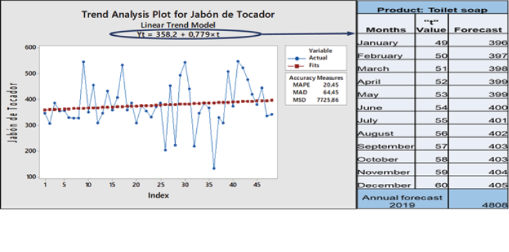 Se implementó el procedimiento para la gestión de inventario, compuesto por diez pasos que incluye fundamentalmente la actualización de la política de surtidos del almacén, el método y el cálculo de los parámetros e indicadores de gestión de inventarios de los productos que la conforman. Además, se describieron los pasos para realizar la proyección de la demanda utilizando el software Minitab, lo que dio como resultado modelos matemáticos para el cálculo del pronóstico de demanda. Finalmente, se calcularon indicadores de un sistema de indicadores de inventario para la evaluación periódica del procedimiento, compuesto por diez indicadores, cuya fuente de información es el software Mistral.