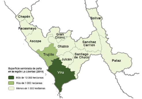 Distribución del cultivo palta en la región La Libertad