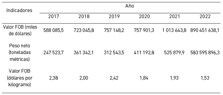 Nota. Adaptado de la plataforma Trade Map (2023).
