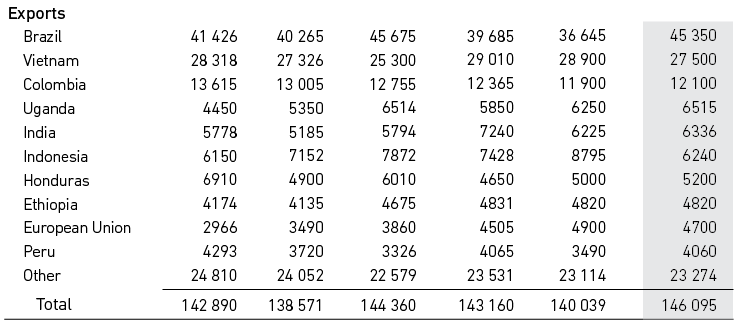 United States Department of Agriculture - USDA (2023). Coffee: World Markets and Trade. https://apps.fas.usda.gov/psdonline/circulars/coffee.pdf
