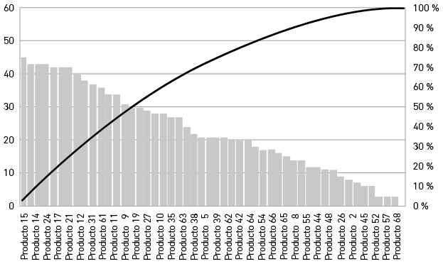 Se utilizó la data de 81 productos brindados por la empresa PIERIPLAST SAC, los cuales tienen periodos en los que no hay demanda. Con este universo total de datos, se hizo una gráfica de Pareto para escoger el producto o los productos que generan mayor impacto.