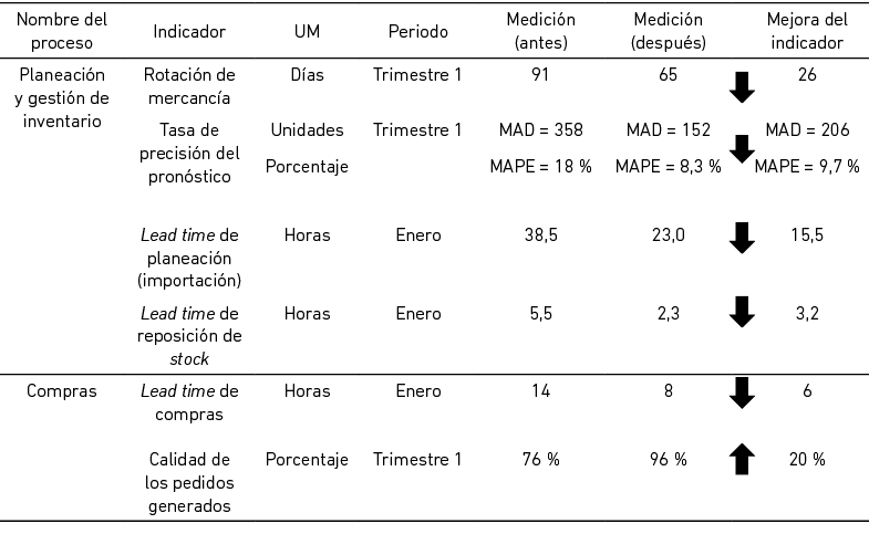 Los resultados obtenidos son concluyentes y muestran un impacto significativo de la gestión eficiente del inventario. Esta eficiencia se tradujo en una reducción notable en la rotación y el tiempo de ciclo, lo que se reflejó en una mayor eficiencia operativa y considerables ahorros financieros. Asimismo, se observaron mejoras sustanciales en el proceso de compras y en las etapas de recepción y almacenamiento, con mejoras en la calidad y precisión de los procesos.