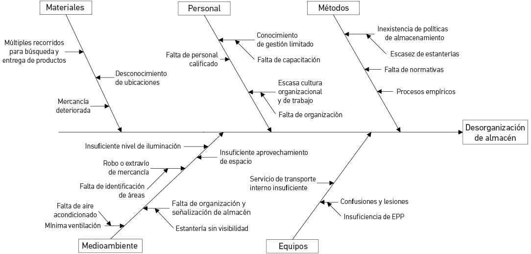 La técnica ABC permite clasificar el inventario de acuerdo con un parámetro definido, que indica cuáles son los materiales más relevantes según el criterio seleccionado; asimismo, orienta y es una referencia para enfocarse en los más importantes para tomar decisiones futuras. Para lograr lo anterior, se utilizó el diagrama de Ishikawa para identificar las causas potenciales que provocaban una inadecuada gestión del inventario, lo que permitió llevar a cabo una redistribución del área. Cabe mencionar que no se tienen resultados cuantitativos de la implementación, dado que no se realizó, debido a que el alcance de la investigación solo fue presentar una propuesta.