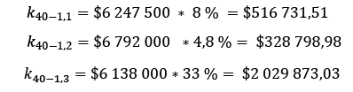 Para determinar el costo de pedido kn para la referencia 40-1, se consideró el porcentaje de participación del producto con respecto al costo total de los productos, y se multiplicó por el valor de la importación. Este proceso se hace para cada una de las cuatro importaciones con el fin de obtener el costo de pedir para cada una de ellas. Los precios fueron los siguientes: $21 063 300,00, equivalentes al 8 % del valor total de la primera importación; $114 521 400,00, correspondientes al 33 % del valor total de la segunda importación; $13 740 860,00, que representan el 4,8 % del valor de la tercera importación. Posteriormente, se realizó la multiplicación del precio de pedido de cada importación por su porcentaje respectivo para obtener el k de cada importación.