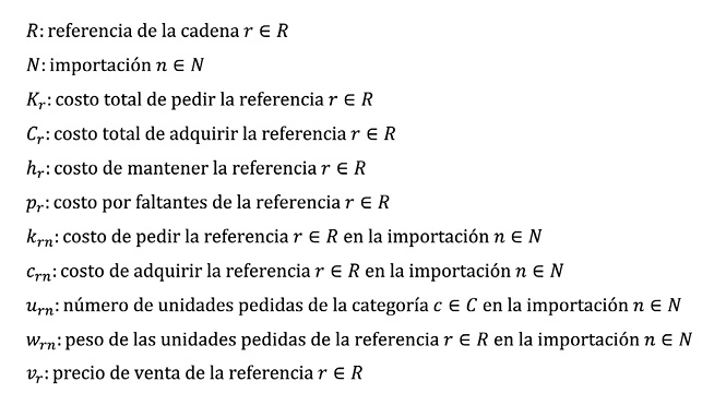 Durante la recopilación de datos, se analizaron registros históricos de ventas e inventarios para establecer la variabilidad en la demanda y los costos, asegurando la consistencia y confiabilidad de los datos con el sistema contable de la empresa. Se identificaron variables clave como costos, inventarios, niveles de servicio y cantidades de pedido. El tratamiento de los datos incluyó técnicas estadísticas para identificar patrones y tendencias. Los resultados se presentan en gráficos y tablas que resaltan las implicaciones para una gestión eficiente de inventarios. Este análisis apoya el diseño de una política de inventarios que minimiza costos y mejora la operatividad de la empresa. A continuación, se muestra la nomenclatura utilizada en este estudio.