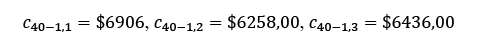 Los costos de adquirir C para la referencia 40-1 en cada una de las importaciones se muestran a continuación: