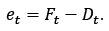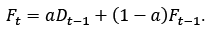 Si la demanda tiene comportamiento estacionario, se utilizará la suavización exponencial simple, que inicializa el pronóstico con el promedio de los datos y continúa con el pronóstico del periodo: Ya con el pronóstico de todos los meses, se encuentra el error: