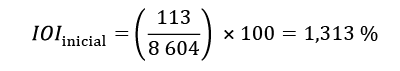 Como parte del análisis del impacto de la implementación de estrategias de control de inventarios, se llevó a cabo una evaluación comparativa utilizando el índice de obsolescencia de inventario (IOI). Este indicador fue útil, pues permitió medir la proporción de productos obsoletos en relación con el inventario total y proporcionó una referencia clave para determinar la efectividad de las acciones implementadas. El IOI se obtuvo mediante la siguiente fórmula: