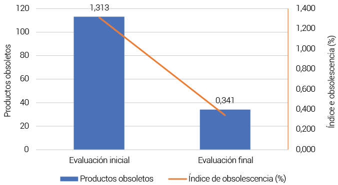 Los resultados muestran una reducción significativa en el índice de obsolescencia de inventario, pasando del 1,313 % al 0,341 %, como se puede observar en la Figura 3 y en la ecuación anterior.