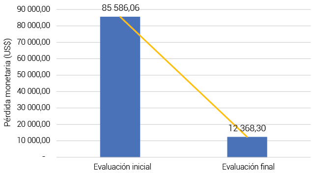 Esta mejora sugiere que las estrategias implementadas —como la optimización de la rotación de stock, la clasificación de inventarios mediante el modelo ABC, la aplicación del método PEPS y el catálogo de locaciones— contribuyeron de manera efectiva a la reducción de la acumulación de productos sin rotación. Además, se observó que el índice de obsolescencia de inventario del 1,313 % representa una pérdida monetaria de US$ 85 586,06. En contraste, la reducción de este indicador al 0,341 % equivale a una pérdida de US$ 12 368,30, lo que implica una disminución de US$ 73 217,76, tal como lo muestra la Figura 4.