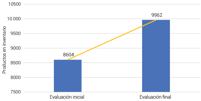 Por otro lado, en la Figura 5, se observa el aumento en el inventario total de 8604 a 9962 productos. Esto indica que la empresa logró mejorar su gestión de stock sin comprometer la disponibilidad de productos esenciales.