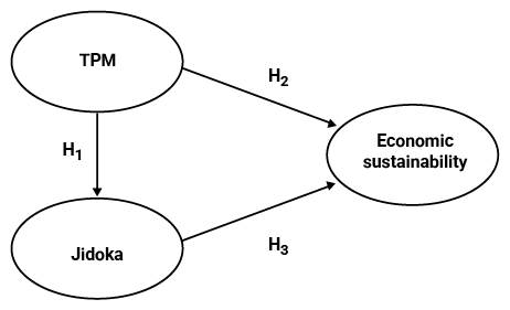 When industries adopt jidoka they position themselves more effectively to navigate the transition to Industry 4.0 by integrating advanced technologies and automation tools. This transition fosters the development of resilient production systems that can adapt to fluctuating economic conditions and demands (Koteswarapavan & Pattanaik, 2024). By enhancing flexibility and responsiveness to market changes, jidoka becomes a strategic asset for firms aiming to sustain long-term economic growth amidst environmental uncertainties (Cantini et al., 2024). This analysis leads us to propose the following hypothesis: